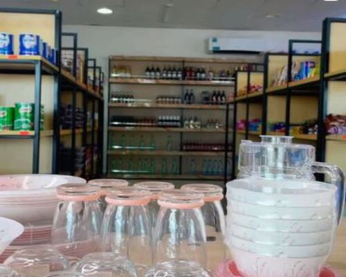 self-service retail store primarily focused on selling food, beverages, and household products.